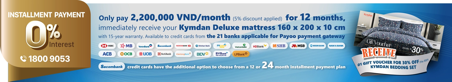 As for the market in Vietnam, Kymdan mattresses with dimensions 160x200x10cm, priced at approximately 28,000,000 VND and with a minimum product life-span of 25 years, this means the cost is approximately 1,000,000 VND for every year of use. This price is entirely within the capable means of middle-class workers (who can purchase by installment) so that they can use a product with such outstanding qualities as mentioned above.